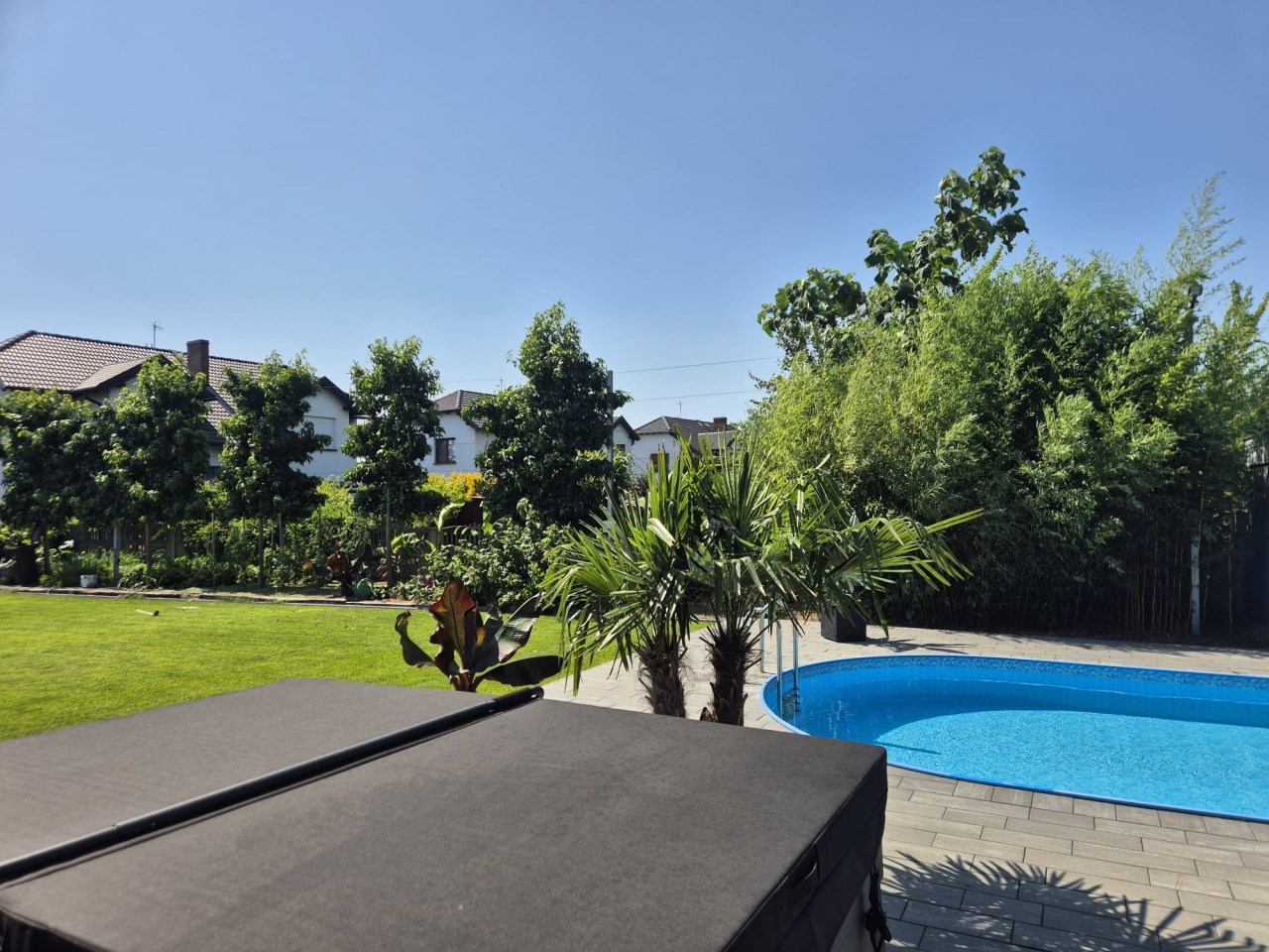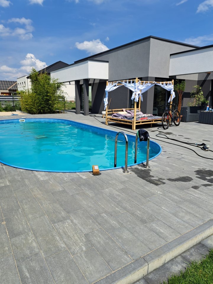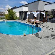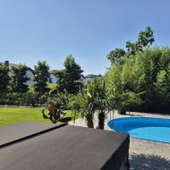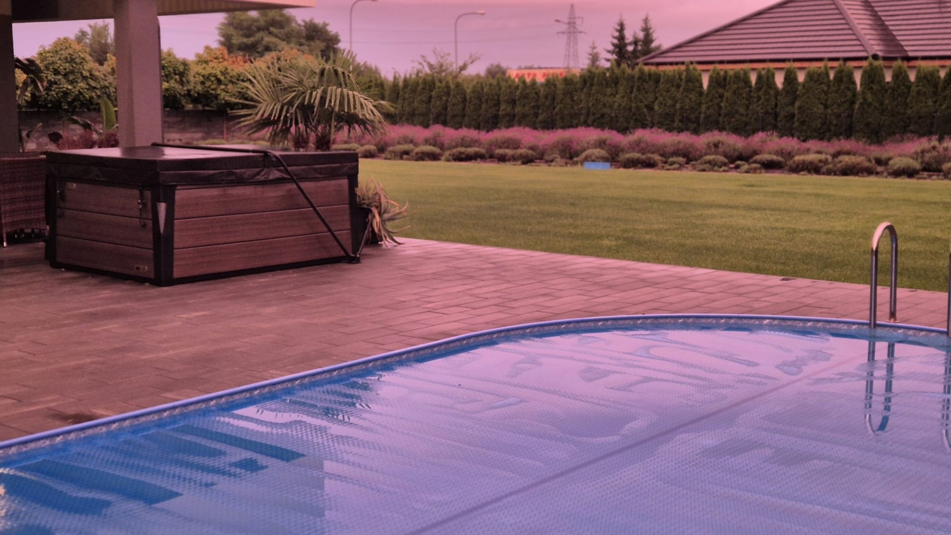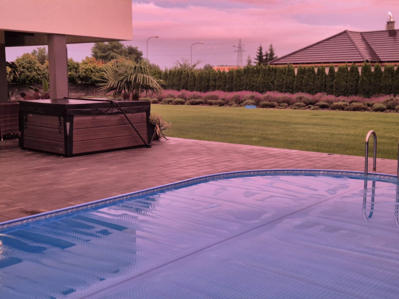 - podgrzewany basen o pojemności 56 m³ z pompą ciepła,