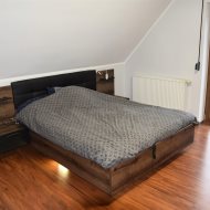 Na piętrze zaprojektowano prywatną strefę domowników. Dwa niezależne, ustawne pokoje, każdy z własnym balkonem, dają poczucie przestrzeni i swobody. Komfortowa sypialnia z wyjściem na duży taras nad garażem to idealne miejsce na chwilę relaksu tylko dla siebie. Do dyspozycji jest również przestronna łazienka z wanną i prysznicem oraz dodatkowa powierzchnia strychowa.