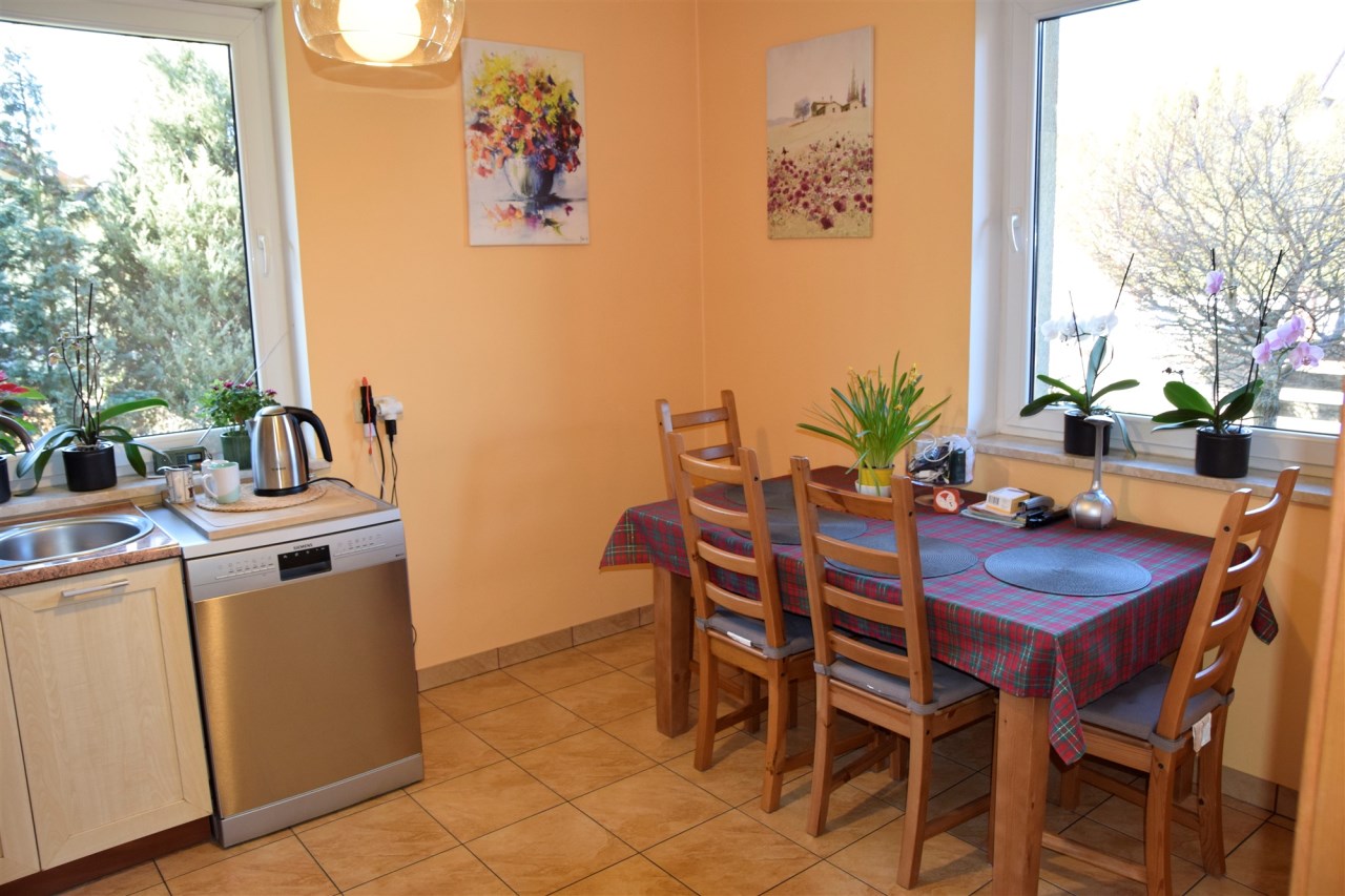 Nieruchomość położona jest w cichej i bezpiecznej części osiedla domów jednorodzinnych. W bezpośrednim sąsiedztwie znajdują się lasy, pola oraz tereny zielone – idealne do spacerów, jazdy na rowerze i aktywnego wypoczynku.